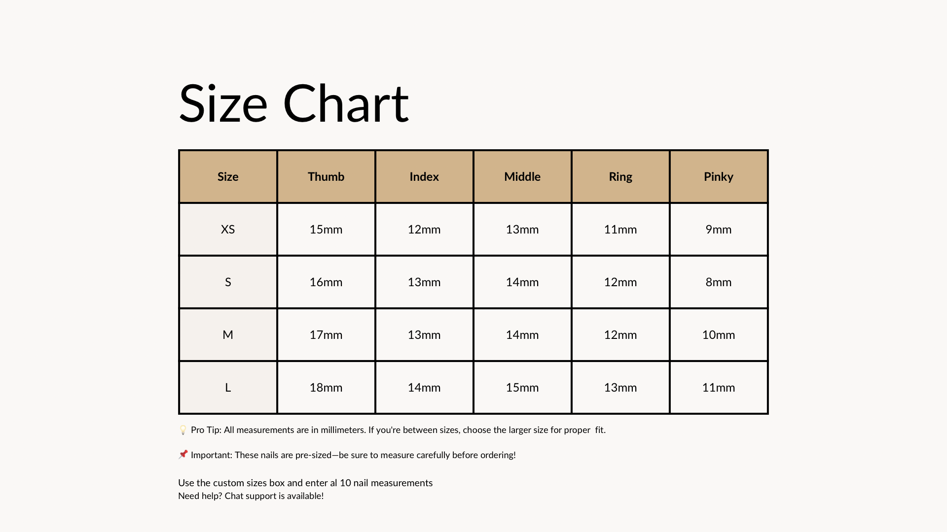 At Tips of Elegance, we believe that it's the little details that make all the difference. That's why we offer a comprehensive range of customization options, including design requests, sizing, shape, length, and personal touches. No request is too big or too small – your satisfaction is our top priority.